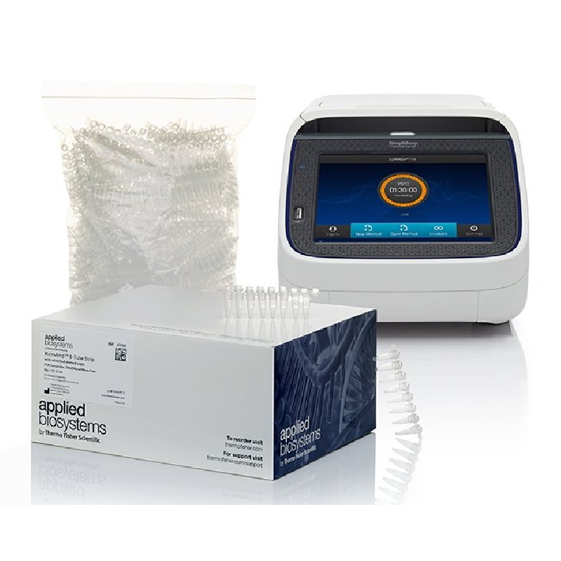 This SimpliAmp Thermal Cycler package includes a thermal cycler plus MicroAmp 8-Tube Strips with Attached Domed Caps.