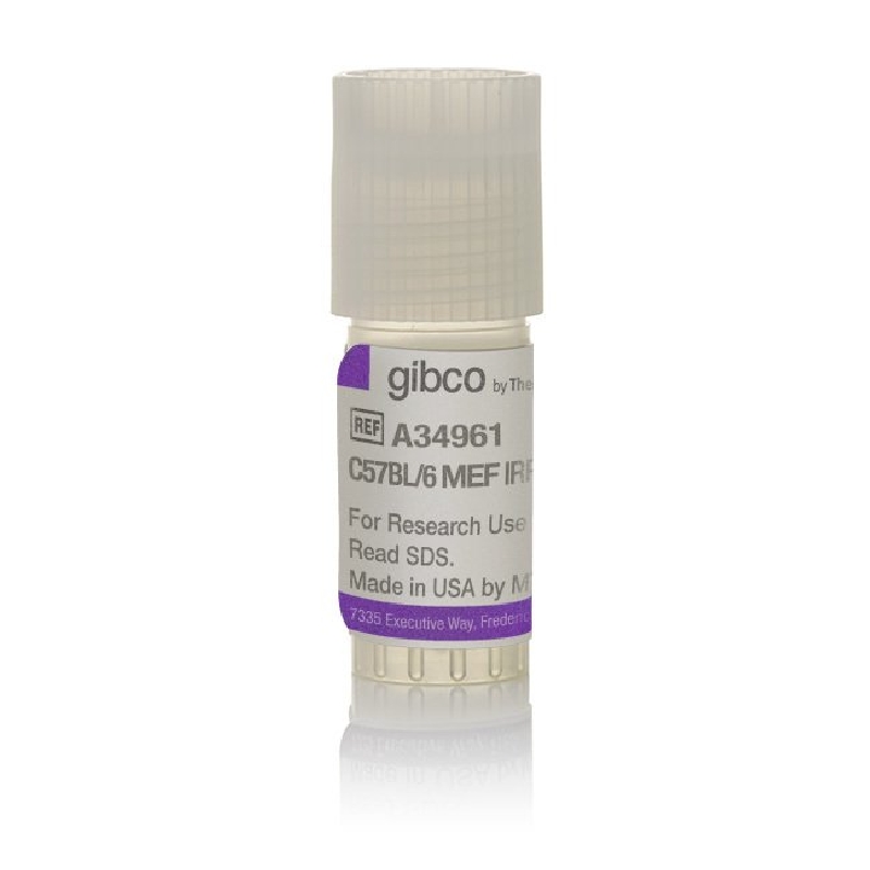 Irradiated Gibco C57BL/6 Mouse Embryonic Fibroblasts (MEFs) are feeder cells that support the culture of healthy undifferentiated embryonic stem cells (ESCs) and induced pluripotent stem cells (iPSCs), especially mouse ESCs/iPSCs. Manufactured by MTI-GlobalStem and equivalent to MTI-GlobalStem Cat. Nos. GSC-6002G and GSC-6202G, these MEF cells are isolated from inbred C57BL/6 mice, mitotically arrested by irradiation, and tested to help ensure performance and minimize the risk of contamination. For our most widely used feeder cells for culturing pluripotent stem cells, see CF1 Mouse Embryonic Fibroblasts, Irradiated. You may also choose from our selection of drug-resistant MEFs to suit your application.