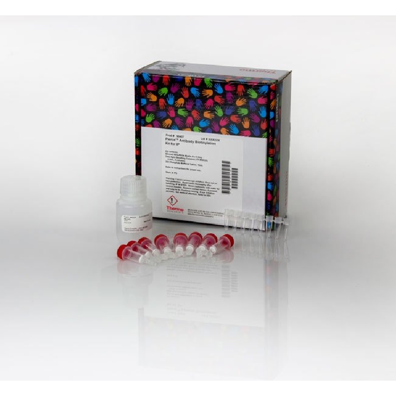 The Thermo Scientific™ Pierce™ Antibody Biotinylation Kit for IP provides biotinylation reagents designed specifically for the labeling of primary antibodies used in immunoprecipitation applications.