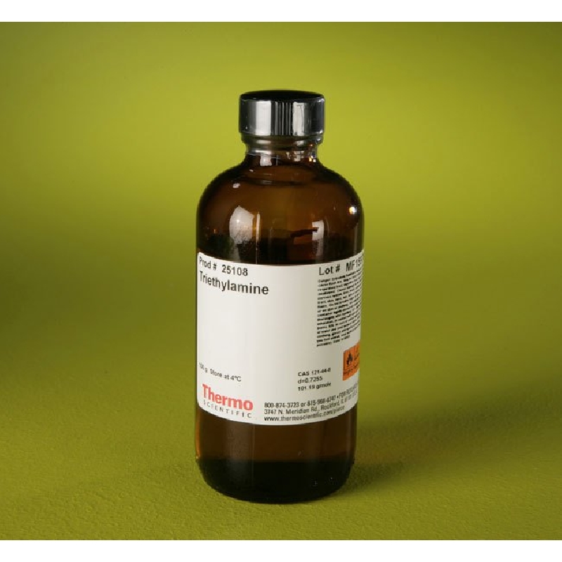 Thermo Scientific Pierce Triethylamine (TEA) is a high-purity solvent that is used in certain HPLC protocols, such as weak anion exchange, to resolve certain tryptic peptides on a reverse-phase column.