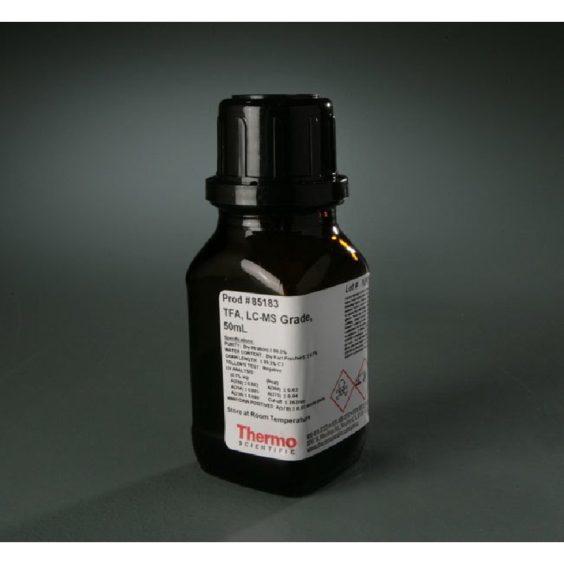 Thermo Scientific Pierce Trifluoroacetic Acid (TFA), Sequencing grade is manufactured and tested to meet strict specifications that ensure superior performance for use as an ion-pairing agent in reverse-phase peptide separations.