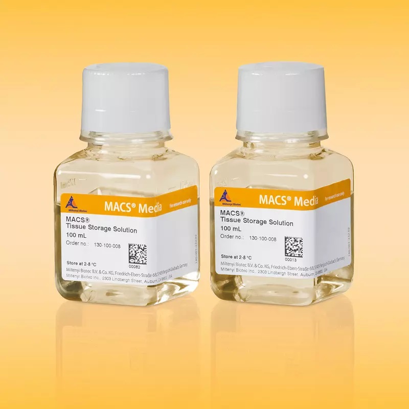 The MACS® Tissue Storage Solution has been developed to allow an optimized storage of fresh organ and tissue samples without showing background effects like cell activation or apoptosis induction. It has been tested and validated on a variety of human and murine tissues including tumors, skin, heart, spleen, brain, and skeletal muscle.