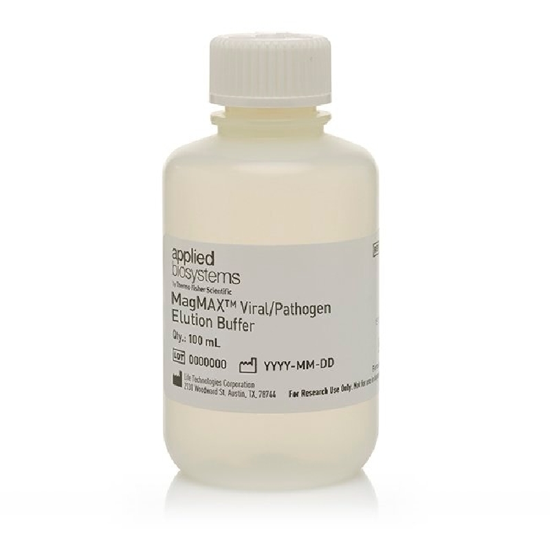 This elution buffer is included in the MagMAX Viral/Pathogen Nucleic Acid Isolation kits and MagMAX Microbiome Ultra Nucleic Acid Isolation Kit (Cat. Nos. A42352, A42356, A42357, and A42358). It is made available separately for applications that require more elution buffer than is provided in the kit.