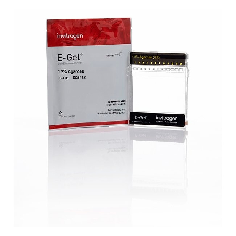 Invitrogen E-Gel precast agarose gels with ethidium bromide are designed for fast, convenient, and safe DNA sample electrophoresis. Each E-Gel agarose gel cassette contains all components and stain required for efficient gel separation and analysis—just load your samples and run. E-Gel agarose gels are ideal for analyzing PCR products, restriction digests, plasmid preparations, or for DNA fragment library analysis.