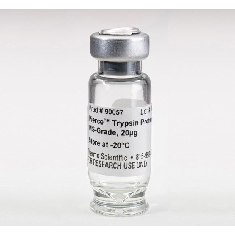 Thermo Scientific Pierce Trypsin Protease, MS Grade, is highly purified porcine trypsin that has been chemically modified for maximum activity and stability in proteomic applications.