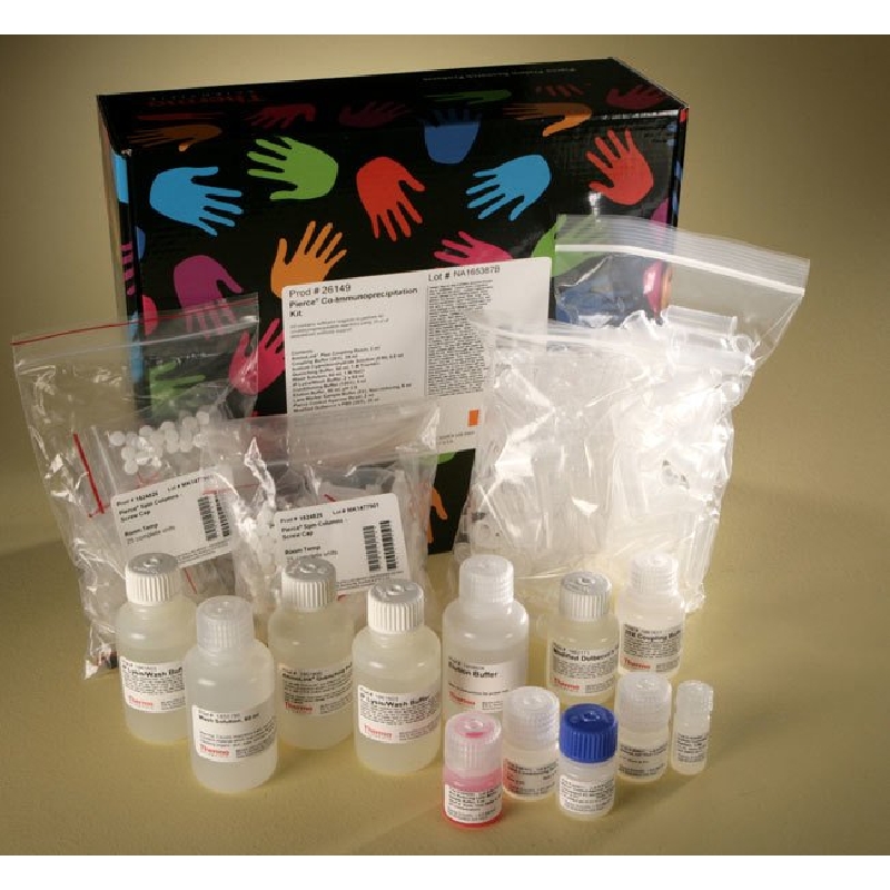 The Thermo Scientific Pierce Co-Immunoprecipitation Kit provides covalent antibody immobilization and all the components necessary to perform a properly controlled co-IP experiment without antibody interference in the final product.