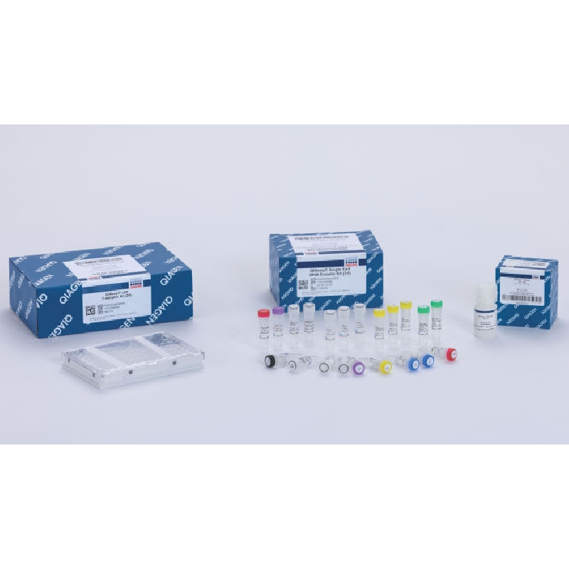 The QIAseq Single Cell DNA Library Kit UDI provides a complete solution for whole genome sequencing from isolated single cells or low amounts of genomic DNA. The kit includes all reagents required for cell lysis, whole genome amplification using REPLI-g DNA polymerase, enzymatic DNA fragmentation and PCR-free NGS library preparation compatible with Illumina NovaSeq and other NGS instruments. This kit provides comprehensive genome coverage and exceptional sequence fidelity, reducing false positives and minimizing dropouts. Due to the PCR-free workflow, this kit is highly suited for the analysis of aneuploidy, copy number and sequence variation in single cells from rare samples. The kit contains all reagents necessary for DNA library construction, including QIAseq Unique Dual-Index Y-Adapters and QIAseq Beads for reaction cleanup. The QIAseq Single Cell DNA Library Kit UDI can support up to 384 samples in a single flow-cell lane, increasing sample throughput and lowering sequencing costs. The QIAseq Single Cell DNA Library Kit UDI includes protocols for unbiased whole genome amplification and for target enrichment of small genomes, such as viral DNA or mitochondrial genomes.