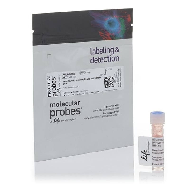The NHS ester (or succinimidyl ester) of Alexa Fluor® 514 is the most popular tool for conjugating this dye to a protein or antibody. NHS esters can be used to label to the primary amines (R-NH2) of proteins, amine-modified oligonucleotides, and other amine-containing molecules. The resulting Alexa Fluor® conjugate will exhibit brighter fluorescence and greater photostability than the conjugates of other spectrally similar fluorophores.